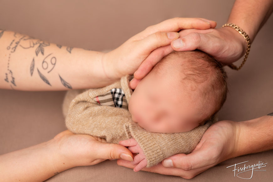 Mit Ruhe und Geduld gestalten wir das Neugeborenen Fotoshooting.